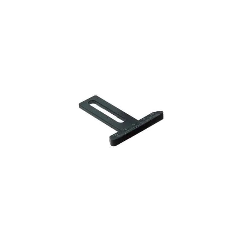 taquet gradué permettant de compenser la différence de niveau lors de l’utilisation de la défonceuse sur le rail.