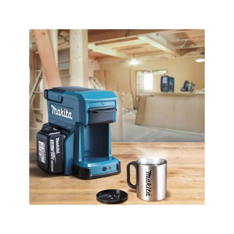 Offrez-vous un moment privilégié sur le chantier en buvant un bon café grâce à la machine à café Makita compatible avec les batteries 18V LXT et 12V CT.