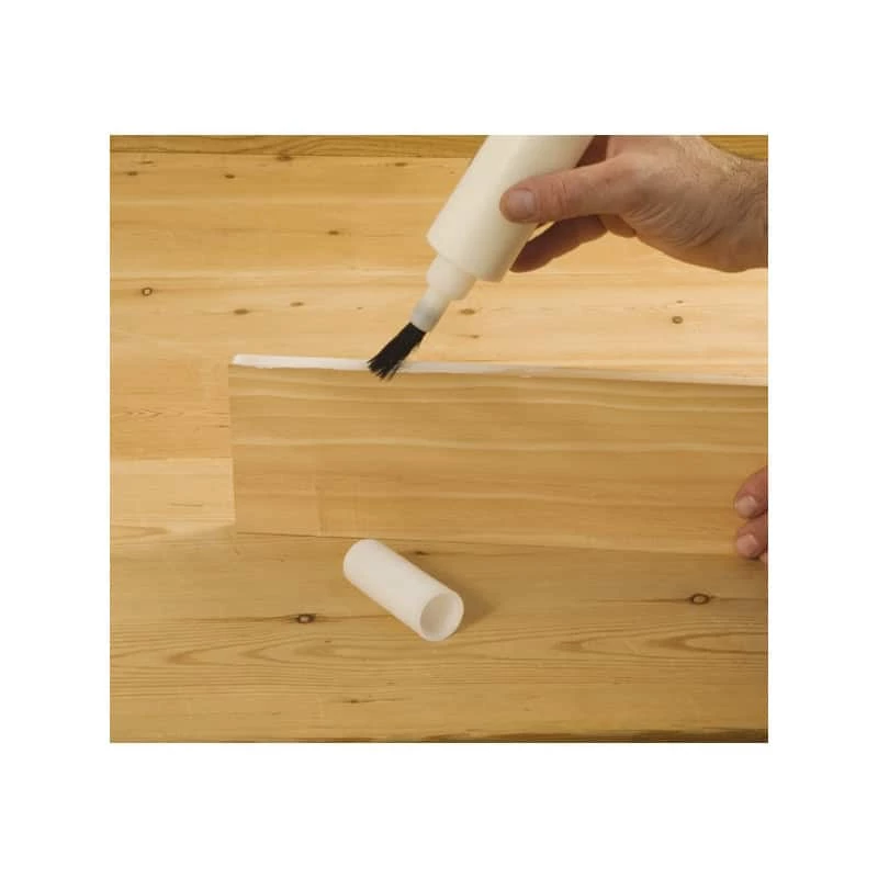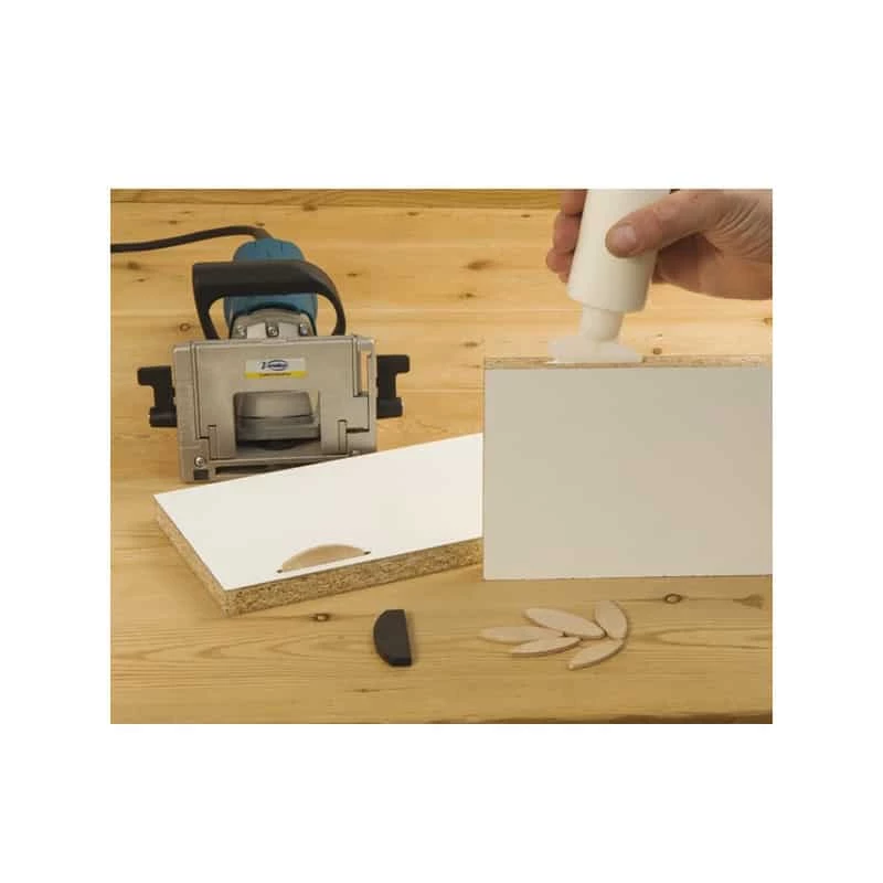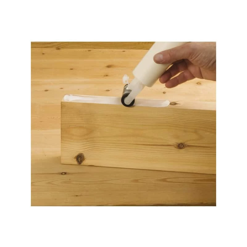 Vous disposez d’un rouleau applicateur pour les surfaces et les chants et d’embouts spécifiques pour encollage des rainures, queues d’aronde, entailles de lamelles, perçages de tourillons…..
